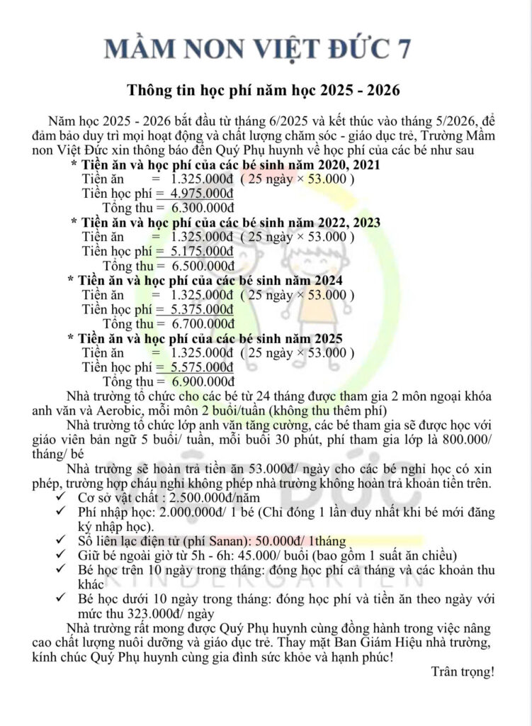Học Phí Mầm Non Việt Đức 7